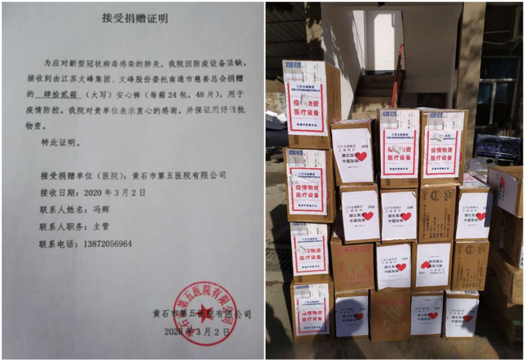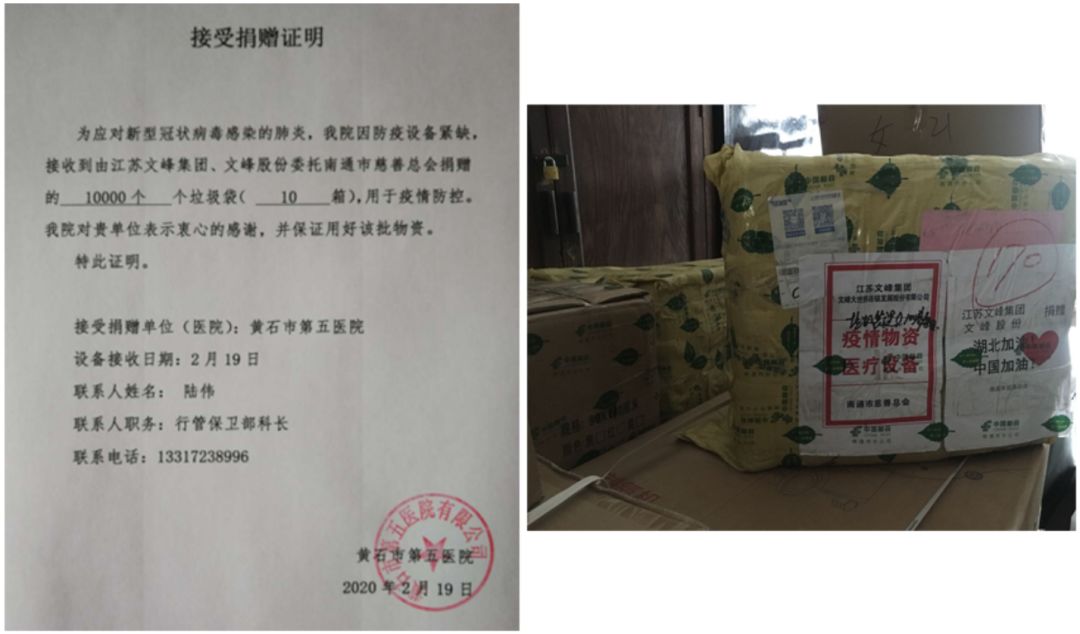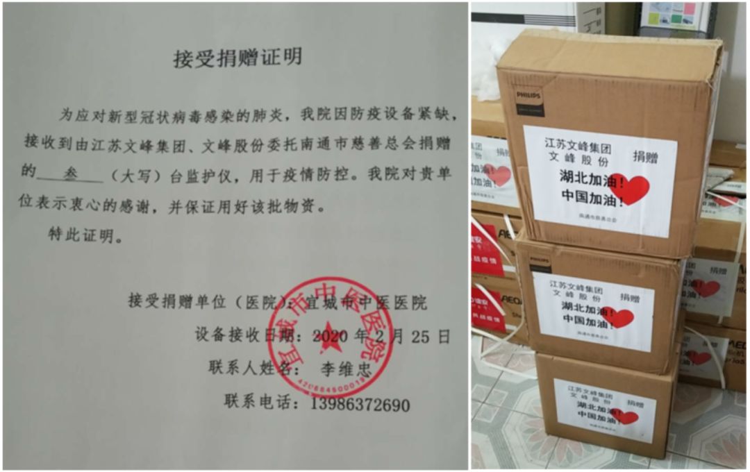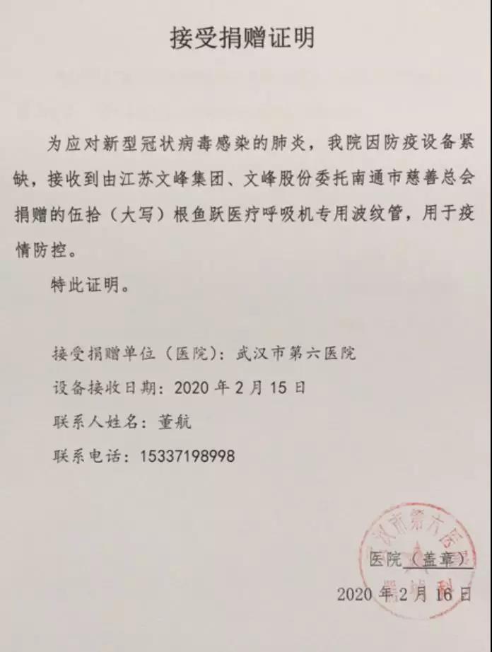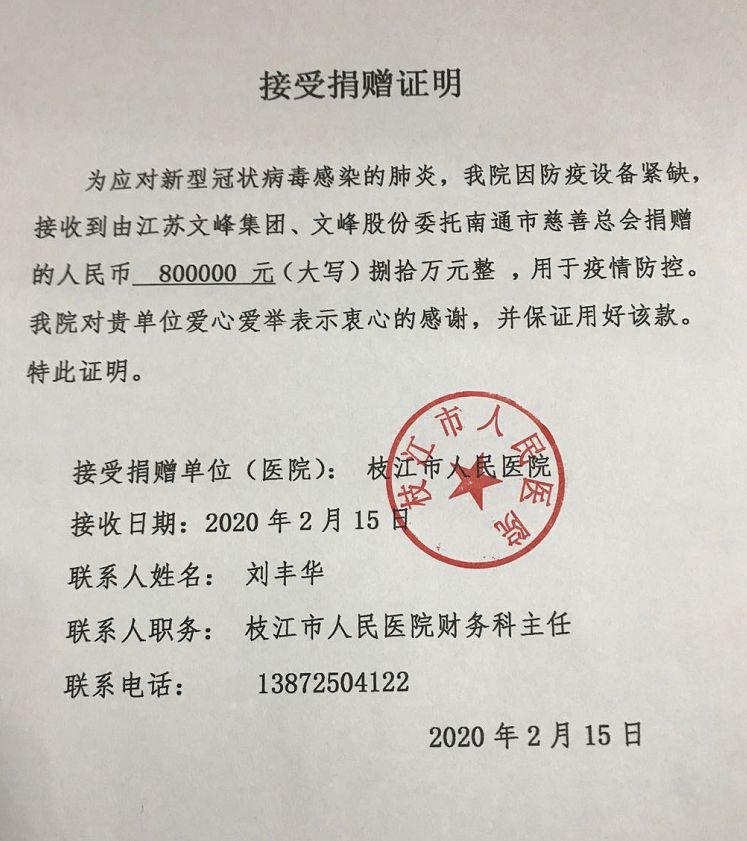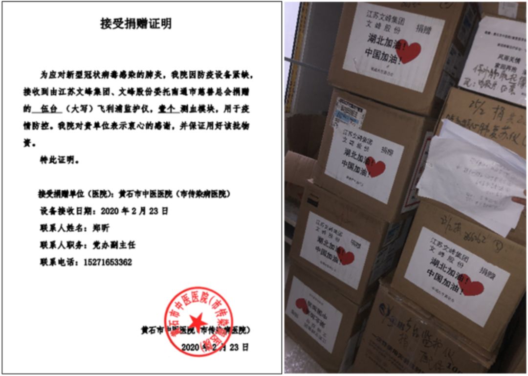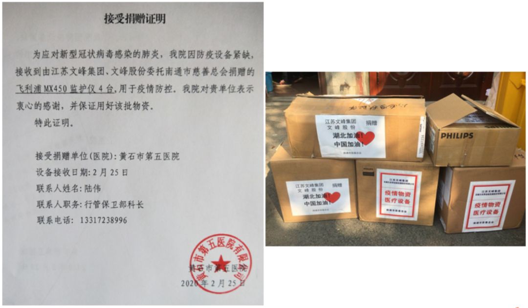 資金用途:江蘇文峰集團(tuán)定向捐贈(zèng)張家港廣和中西醫(yī)結(jié)合醫(yī)院,用于采購醫(yī)療設(shè)備、防疫物資