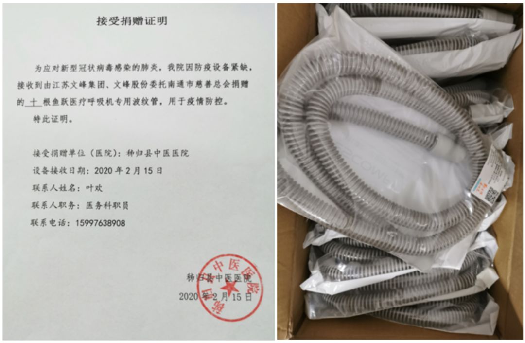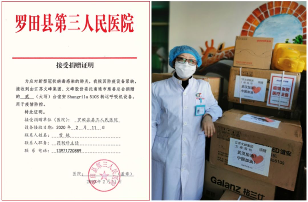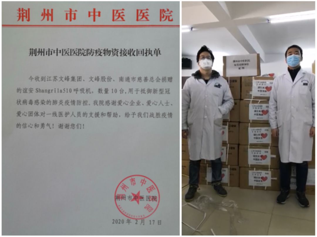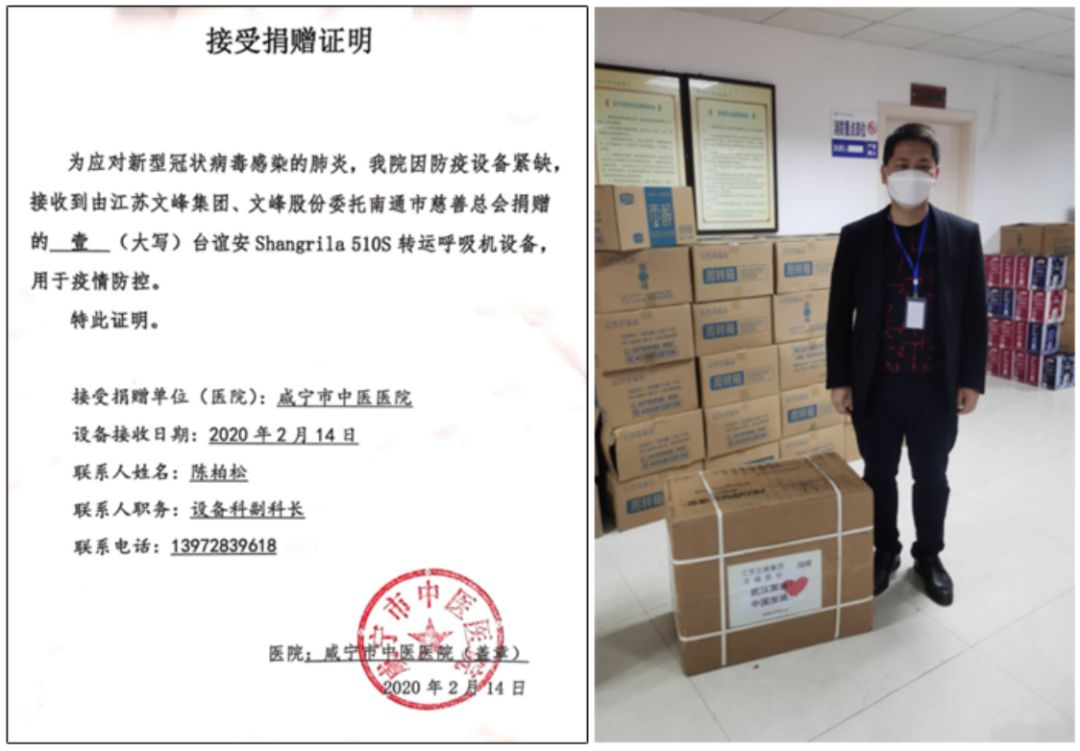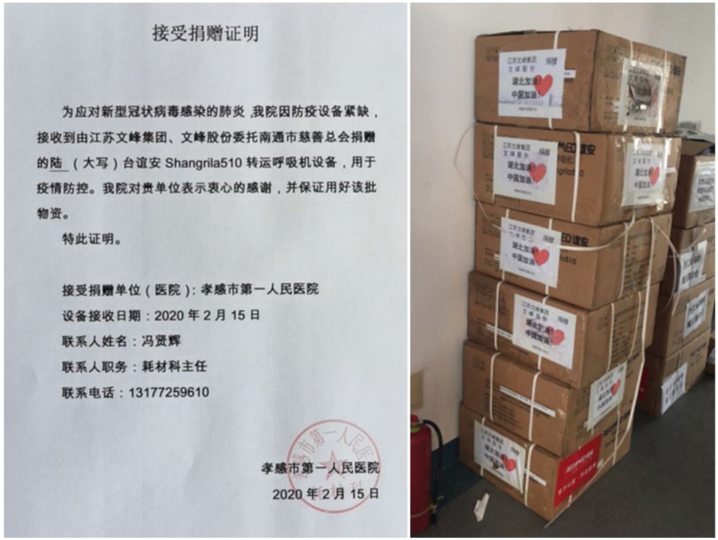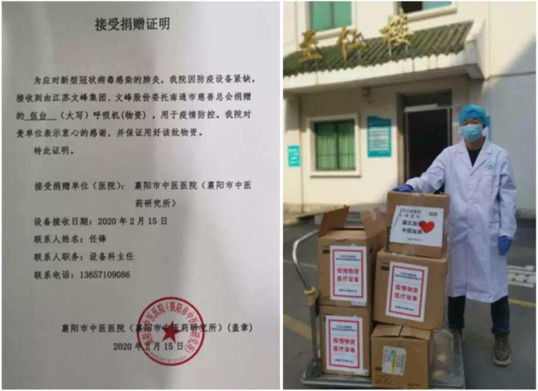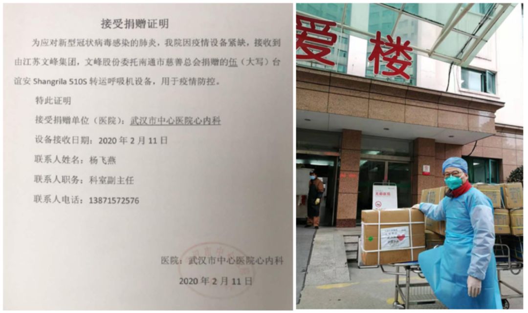 文峰集團(tuán)攜手阿拉善SEE生態(tài)協(xié)會(huì),共同捐助給武漢市第三醫(yī)院魚躍牌雙水平醫(yī)用專業(yè)呼吸機(jī)40臺(tái),用于支援火神山醫(yī)院建設(shè)。