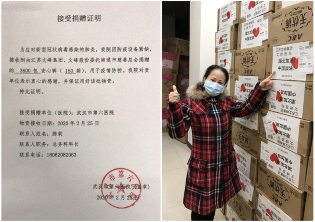據(jù)了解,戰(zhàn)斗在一線的醫(yī)生中50%以上為女性,女護(hù)士更是超過90%。女性醫(yī)護(hù)人員的年齡層集中在中青年,當(dāng)她們?cè)谔厥獾纳砥冢廊灰讨聿贿m堅(jiān)守崗位,高強(qiáng)度搶救病人。由于防護(hù)服穿脫一次就作廢,一線醫(yī)護(hù)人員為了節(jié)省防護(hù)服,經(jīng)常連續(xù)8-9個(gè)小時(shí)不換防護(hù)服??紤]到她們的特殊需求,江蘇文峰集團(tuán)緊急行動(dòng),捐贈(zèng)了2500箱安心褲馳援武漢,為奮戰(zhàn)在一線的女性醫(yī)護(hù)人員奉獻(xiàn)一份力量。
