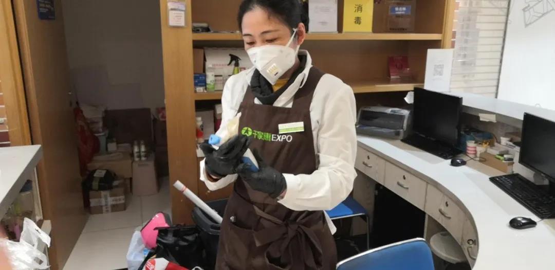 每天營業(yè)前、營業(yè)中和營業(yè)后,她和同事們都要使用消毒清潔劑在店內(nèi)進行無死角殺菌消毒,對收銀臺、邊側(cè)扶手、手推車、手提籃、服務(wù)臺、寄包柜等高頻接觸的重點區(qū)域,更是要每2小時就要進行一次消殺工作。