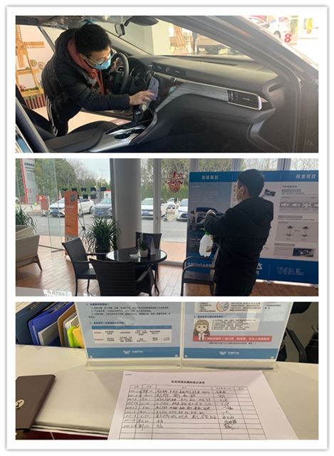 對黃易佳來說,消殺任務(wù)也是工作中的重中之重。公司領(lǐng)導一直密切關(guān)注疫情的發(fā)展,在疫情初期及時調(diào)整了工作重點,為員工準備了口罩、手套、消毒水、紅外體溫儀等防護用品。黃易佳和同事們每天嚴格佩戴防護設(shè)備,分早、中、晚三次進行店內(nèi)全面消毒殺菌工作。他們?yōu)閬淼昕窜嚨目蛻暨M行體溫測量,為沒有佩戴口罩的客戶免費提供口罩,佩戴后方可進店看車,并且按照社區(qū)的要求對每一位進店客戶進行登記。