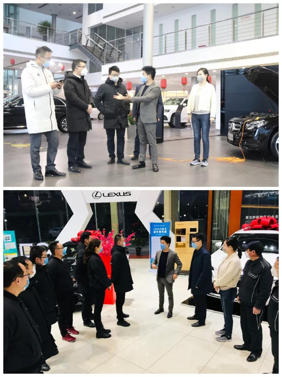 1月31日下午,江蘇文峰汽車集團(tuán)總裁陳曉、副總經(jīng)理顧瑩禎、財(cái)務(wù)總監(jiān)黃明軒一行檢查了旗下奔馳4S店、雷克薩斯4S店的疫情防護(hù)工作。