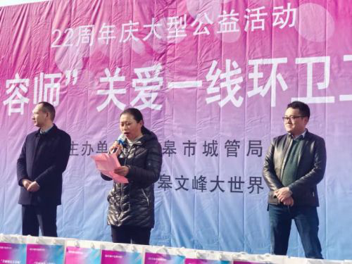 12月7日,在文峰大世界如皋店廣場,文峰大世界如皋店22周年年慶及大型公益活動隆重舉行,此次公益活動的主題為——“美麗城市美容師”關(guān)愛一線環(huán)衛(wèi)工人。如皋市城管局相關(guān)領(lǐng)導(dǎo)和文峰大世界如皋店相關(guān)負(fù)責(zé)人出席了本次活動。捐贈儀式環(huán)節(jié),市城管局和文峰大世界如皋店的領(lǐng)導(dǎo),共同為可親可敬的“城市美容師”們送上了關(guān)愛與祝福。