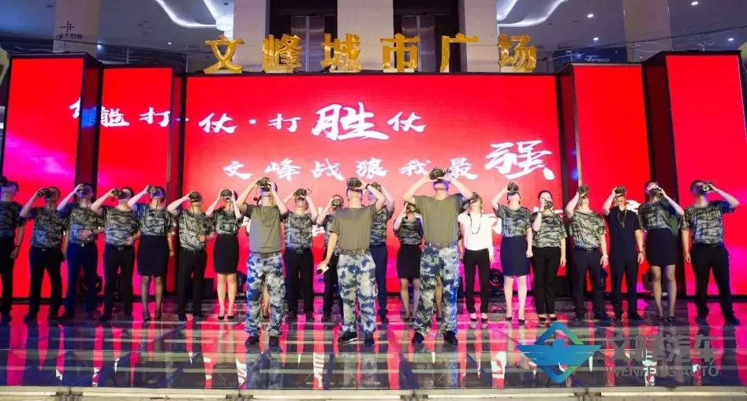最后,文峰汽車總裁、各門店負(fù)責(zé)人再次上臺,帶領(lǐng)銷售精英共同飲下出征酒,激昂地喊出“能打仗,打勝仗。文峰戰(zhàn)狼我最強(qiáng)”的口號,瞬間點(diǎn)燃了各位精英的戰(zhàn)斗激情,現(xiàn)場再次沸騰。