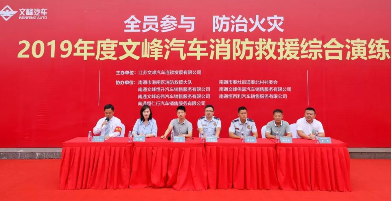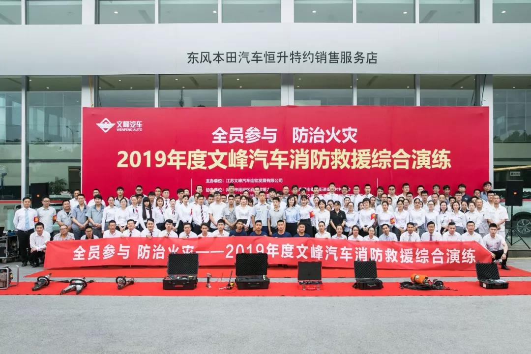 為增強員工的消防意識,普及員工的消防知識,提高應(yīng)急避險、逃生自救的能力,6月19日,文峰汽車與南通市港閘區(qū)消防救援大隊、秦北村村委會聯(lián)合舉辦2019年度文峰汽車消防救援綜合演練,一汽大眾、廣汽豐田、東本恒升、別克、凱迪拉克全體員工共同參與。港閘區(qū)消防救援大隊大隊長施海忠、中隊長樊龍俊、秦北村村委會書記徐建成、安全員李平、文峰汽車總裁陳曉、文峰汽車副總經(jīng)理顧毅出席活動。