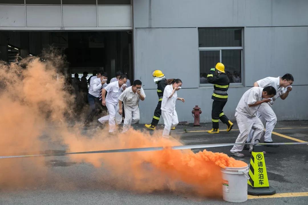 消防安全知識培訓(xùn)結(jié)束后,相關(guān)人員來到模擬火災(zāi)發(fā)生點。隨著警報聲的拉響,實操演練正式拉開帷幕。相關(guān)人員在總指揮——廣汽豐田總經(jīng)理王祖安的帶領(lǐng)下,有序撤離火災(zāi)現(xiàn)場。
