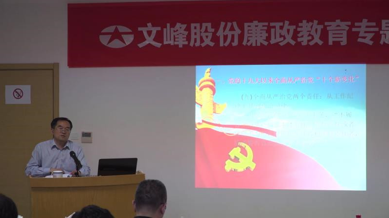 5月16日,文峰股份特邀南通市紀(jì)委常委湯明文在文峰商學(xué)院開(kāi)展廉政教育專題講座。公司總經(jīng)理室全體成員及相關(guān)部門負(fù)責(zé)人、各分公司總經(jīng)理助理以上高管人員參加了會(huì)議。
