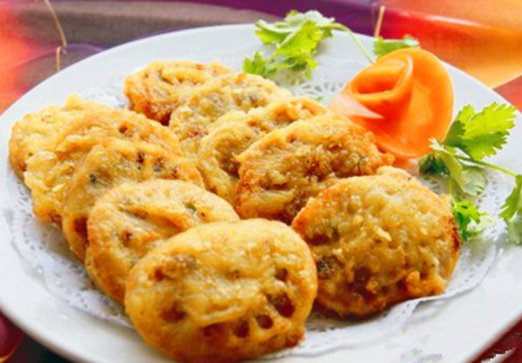中秋節(jié)吃藕餅寓意團圓,制作的主要食材除了新鮮蓮藕以外,還會加入肉餡。厚薄均勻的兩片藕,夾帶著肥而不膩的肉餡,裹上那一層面粉漿糊,在油鍋里一炸,兩面金黃,香味撲鼻,外酥里脆,非常的誘人。南通人在中秋吃藕餅就像吃月餅一樣,同時藕餅也是各大聚會必點的美食之一。