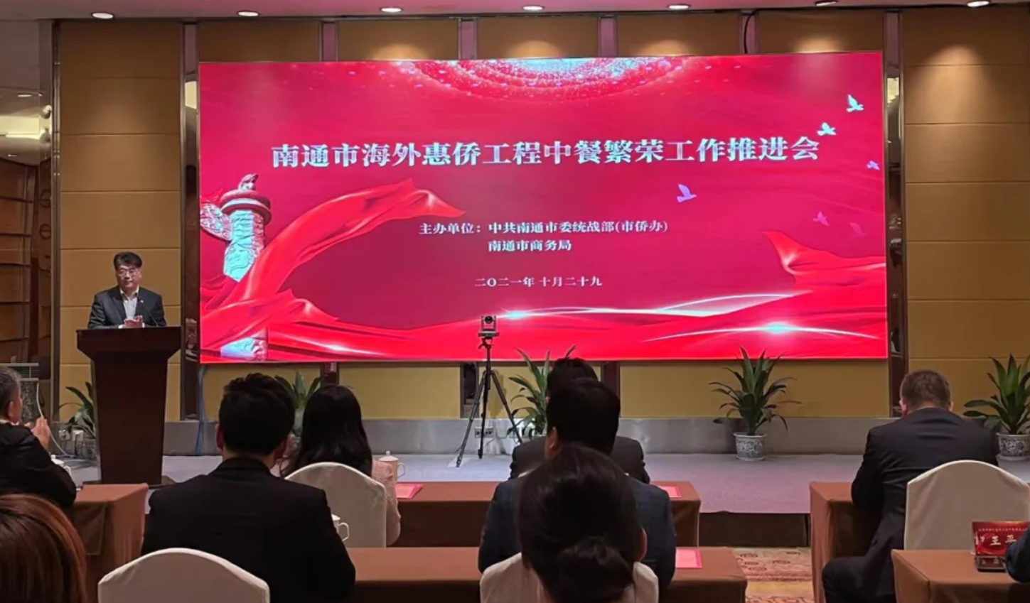 10月29日,江蘇省南通市委統(tǒng)戰(zhàn)部(僑辦)和市商務(wù)局在南通大飯店聯(lián)合召開了海外惠僑工程中餐繁榮工作推進(jìn)會,南通大飯店被授牌成為“中餐繁榮實踐基地”。