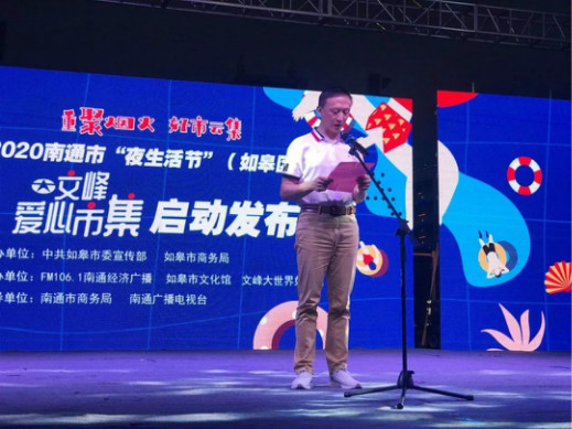 7月24日晚, “重聚煙火 好市云集”——2020南通“夜生活節(jié)”暨文峰愛心市集第二站走進(jìn)如皋,為這個(gè)仲夏日增添了別樣的色彩。如皋市人民政府副市長(zhǎng)蔣麗女士、如皋市宣傳部副部長(zhǎng)、新聞出版局局長(zhǎng)、網(wǎng)信辦主任紀(jì)樹華先生、如皋市商務(wù)局局長(zhǎng)王建云女士、如皋市新聞出版局副局長(zhǎng)張小波先生、如皋市商務(wù)局副局長(zhǎng)范亞林先生、如皋工業(yè)園區(qū)管委會(huì)副主任張婧女士以及如皋文峰大世界有限公司總經(jīng)理吳險(xiǎn)峰先生共同出席了啟動(dòng)儀式。