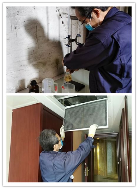 南通大飯店擁有近700間客房,空調消毒、清潔的任務繁重。為保證顧客和員工的安全與健康,姚海群帶領同事對飯店的空調通風系統(tǒng)進行了全面維護,從空調消毒劑的選擇到業(yè)務的操作流程,他們都制定了嚴格的標準和規(guī)則,并認真貫徹執(zhí)行。清洗空調的過濾網(wǎng)、出風口和回風口,姚海群和同事們對每一個環(huán)節(jié)都一絲不茍。在完成空調系統(tǒng)空氣處理機和客房空調的清洗消毒工作之外,他們還要對所有設備進行檢測和維護,讓設備能夠隨時正常工作,以保證室內空氣的清新。
